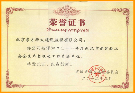 2011年度武漢市建筑施工安全生產(chǎn)標(biāo)準(zhǔn)化 工作先進(jìn)單位
